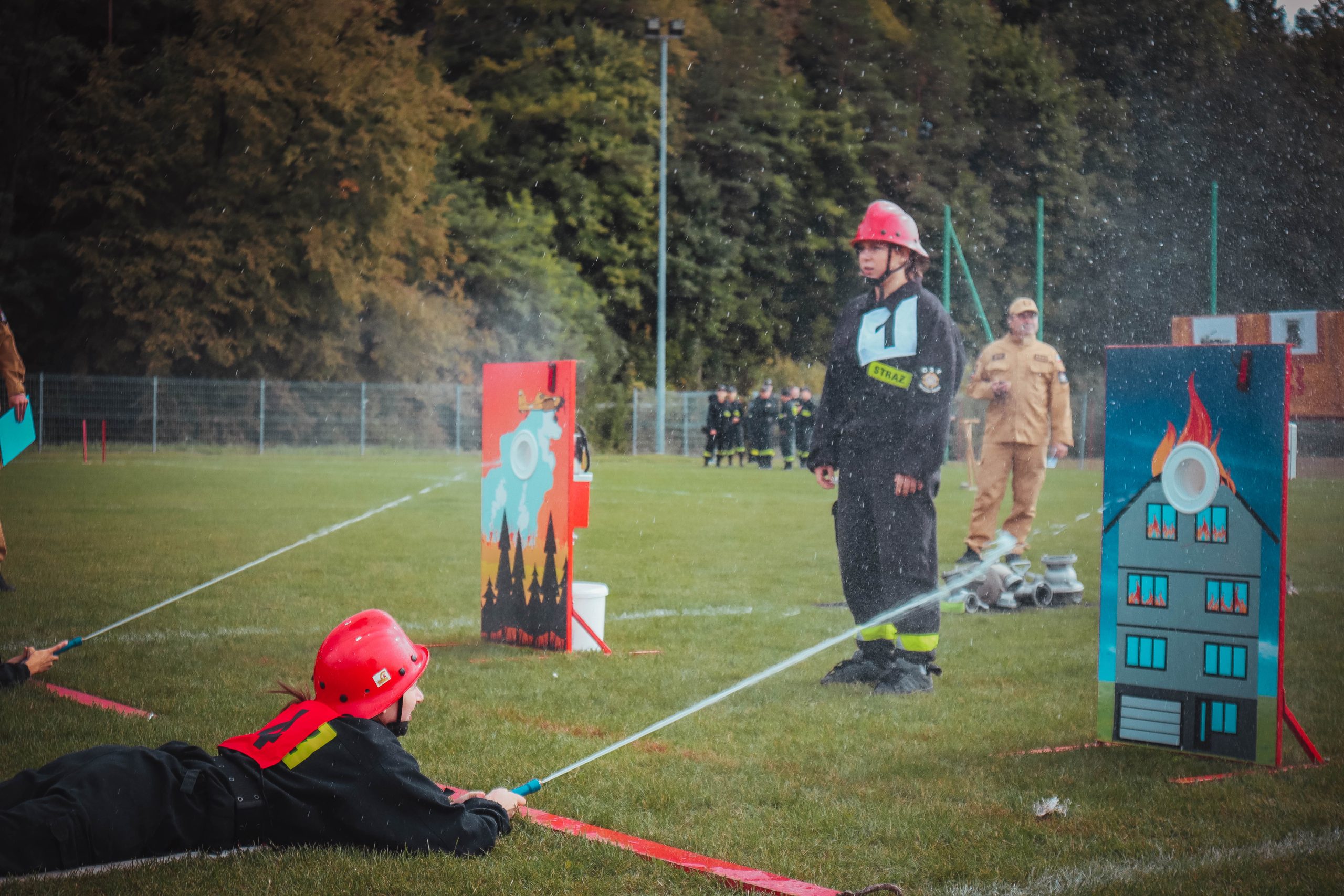Po zakończeniu starów drużyn MDP, rozpoczęły się starty jednostek OSP drużyn dorosłych grupy ,,A” . Niestety, ze względu na intensywne opady deszczu zawody musiały zostać przerwane.