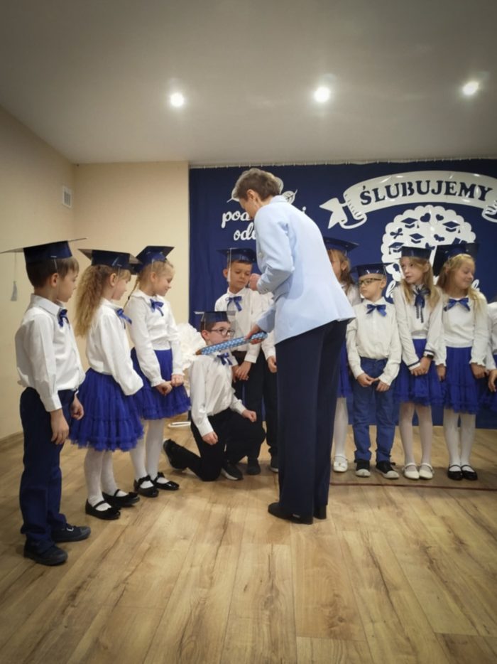Najważniejszym punktem uroczystości było złożenie przez pierwszoklasistów uroczystego ślubowania i symboliczne pasowanie na uczniów. Dyrektor Elżbieta Wójcik miała zaszczyt dokonać tego aktu, oficjalnie przyjmując dzieci do społeczności szkolnej. Do uroczystego pasowania przystąpiło 21 uczniów.